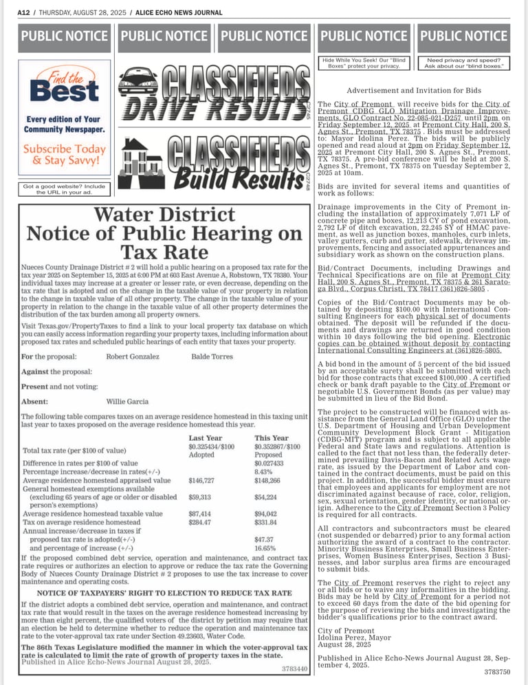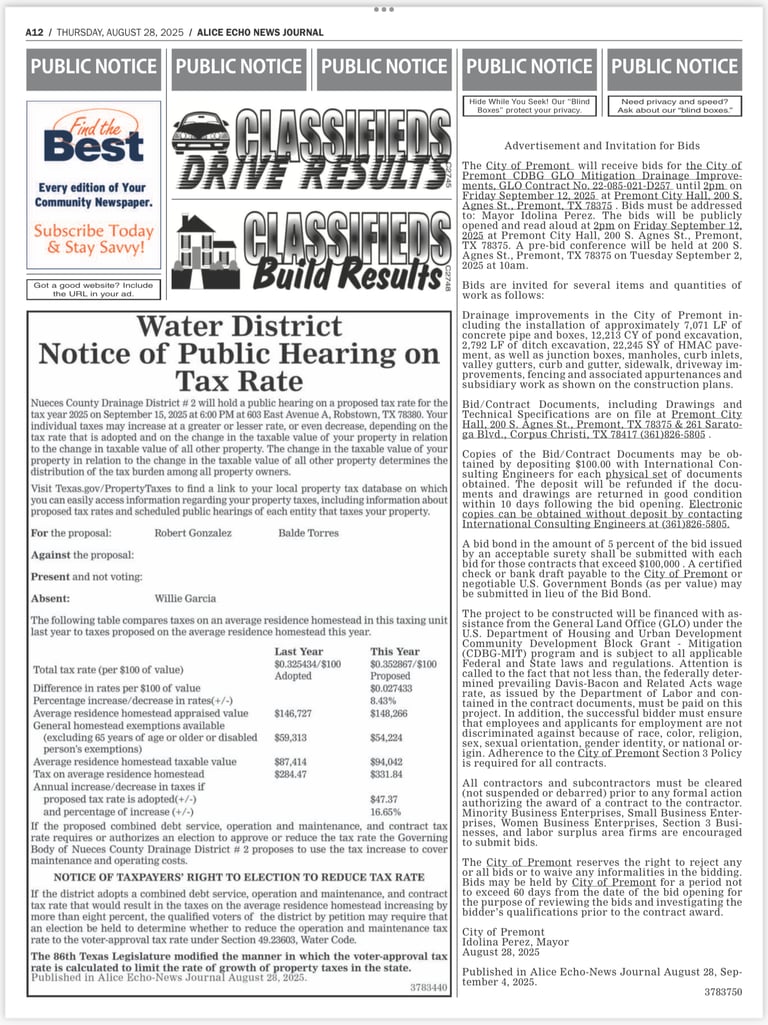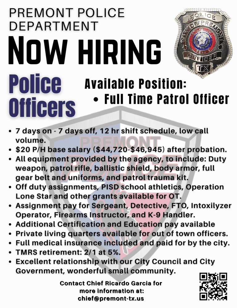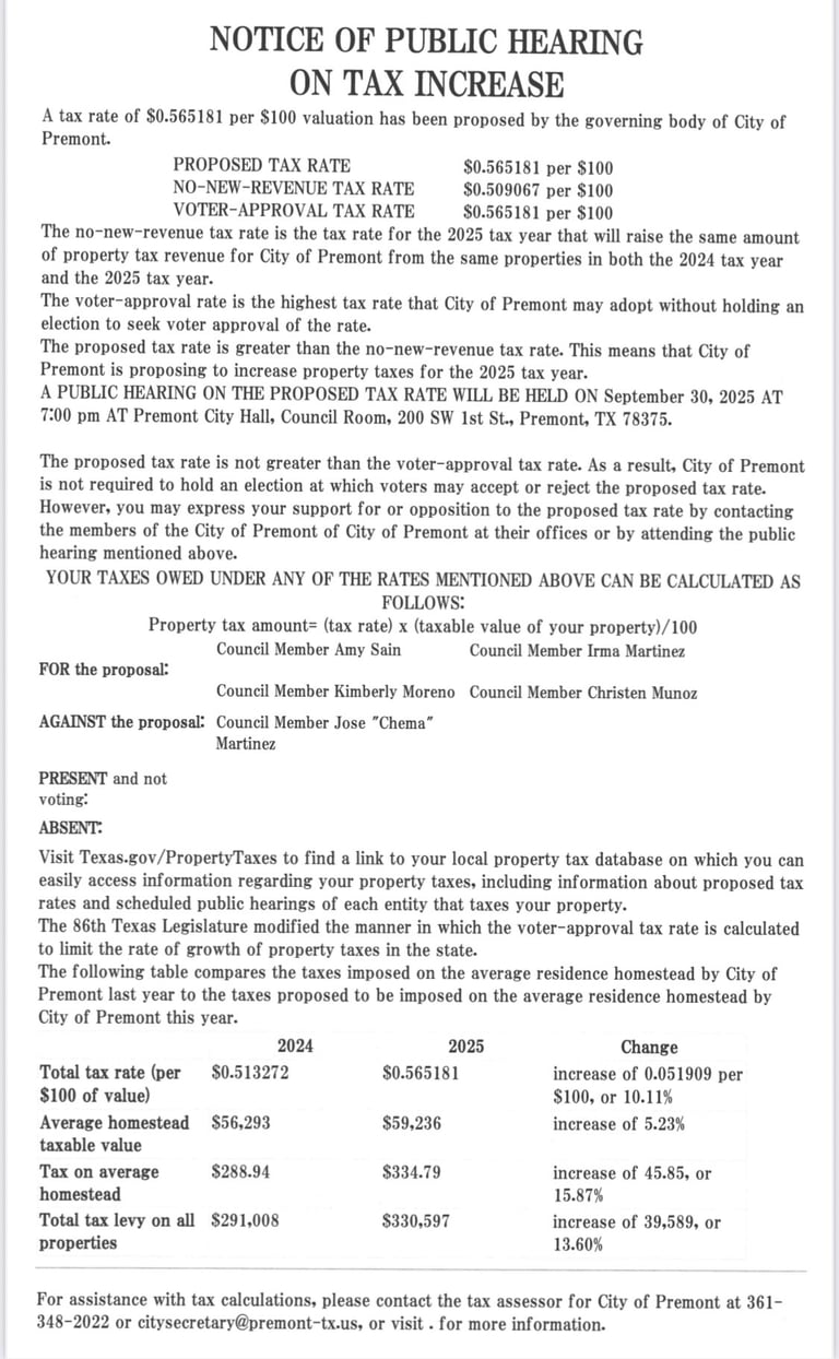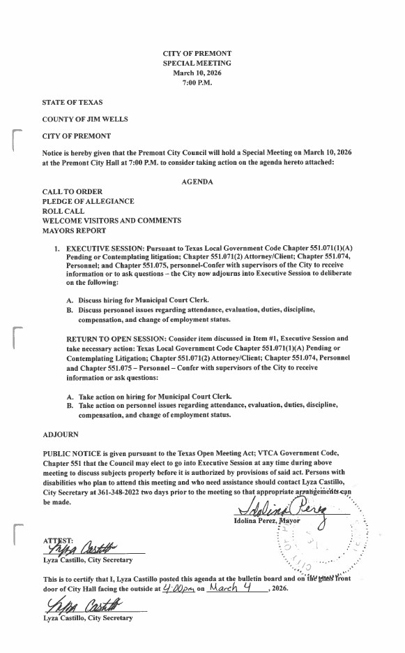 For more information, please contact Premont City Hall at 361-348-2022