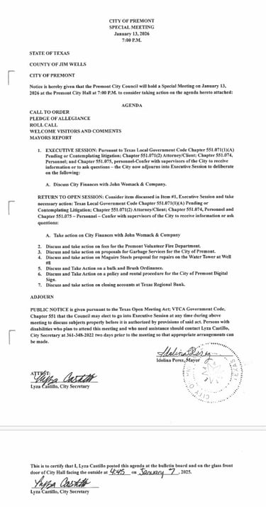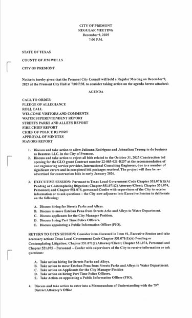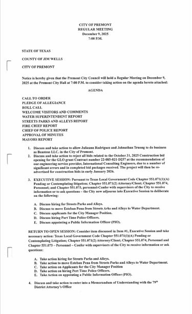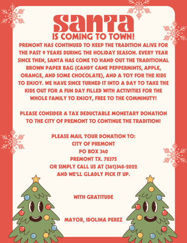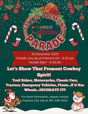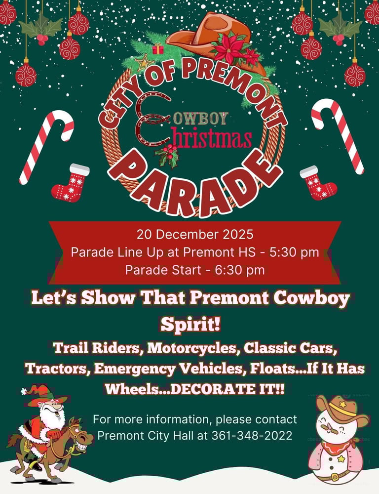 For more information, please contact Premont City Hall at 361-348-2022